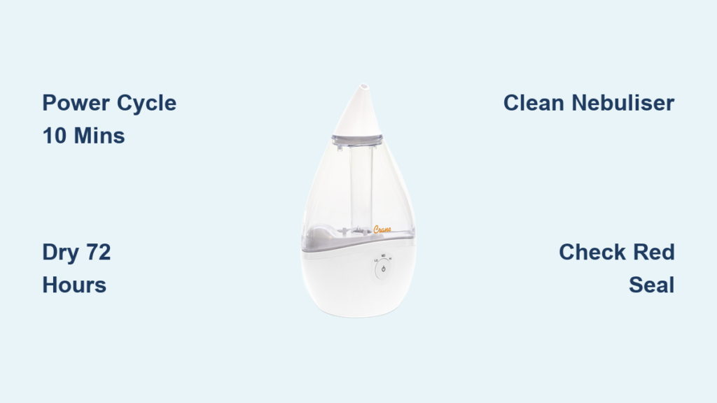 Your Crane humidifier suddenly goes silent—lights glow but no mist fills the room, or maybe it died completely after a