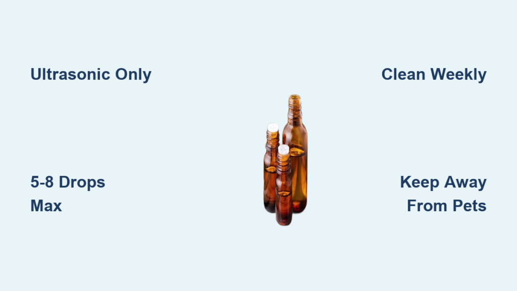 Critical safety step: Always add oil to water—not directly to humidifier mechanisms—to prevent concentrated oil contact with plastic components. Measure drops using the bottle’s built-in dropper for accuracy.