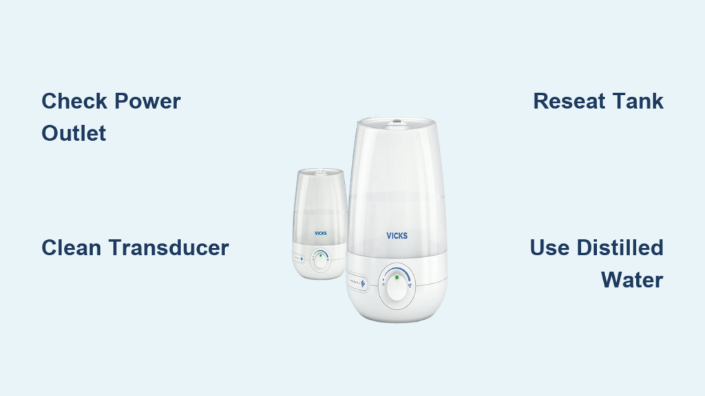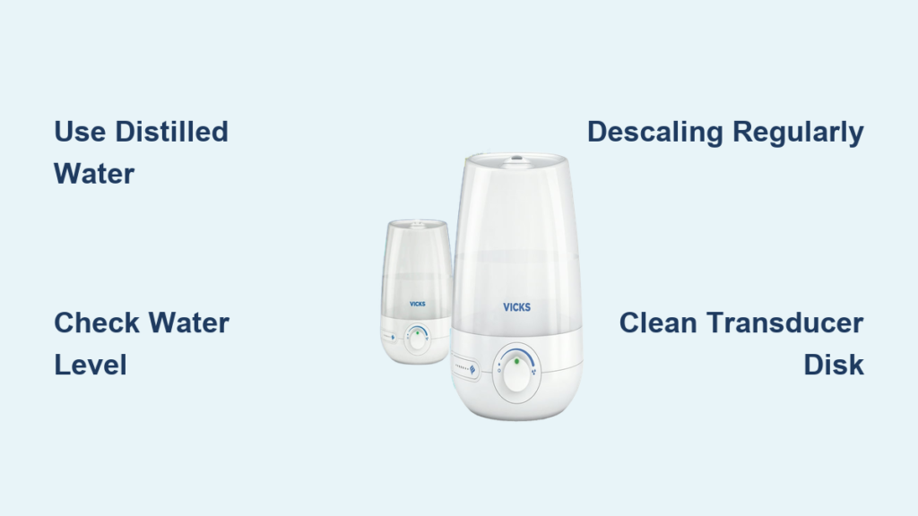 Your Vicks cool mist humidifier sits silent on the nightstand, the air still parched despite hours of supposed operation. Dry