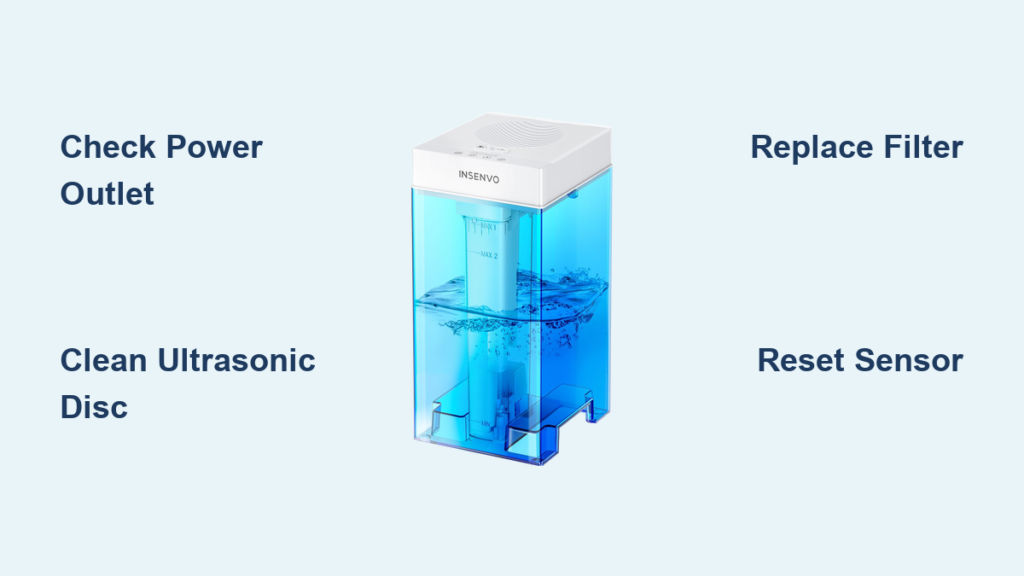 Your Insenvo humidifier suddenly stops producing mist, leaving you with dry, uncomfortable air just when you need relief most. Maybe