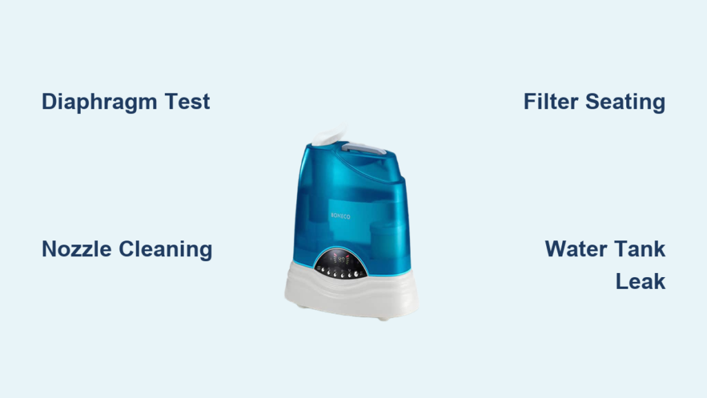Your Boneco humidifier sits silent despite a full water tank—no soothing mist, no comforting hum, just a deceptive green light