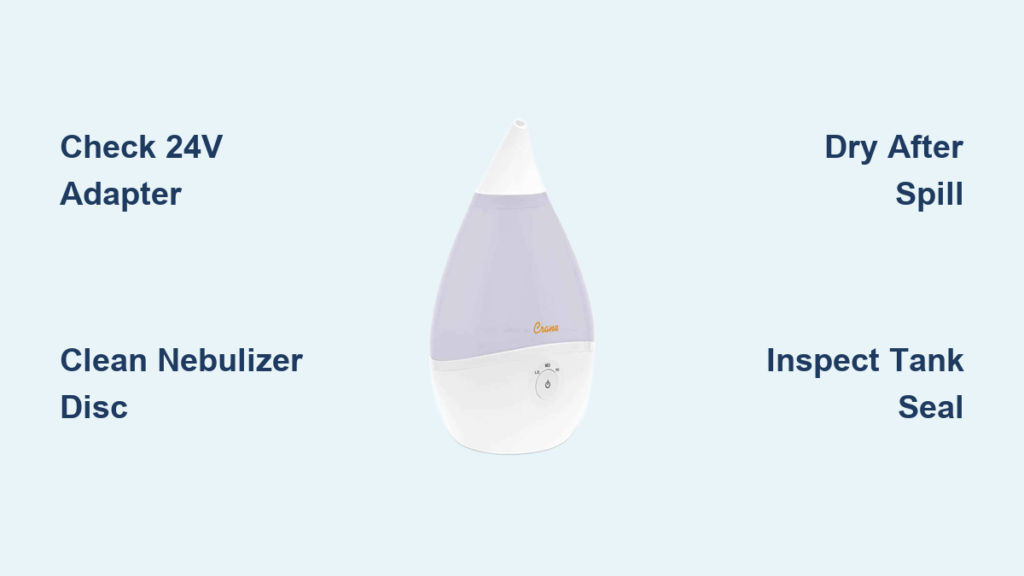 Your Crane cool mist humidifier hums to life with the familiar power light glowing, yet the room stays stubbornly dry.