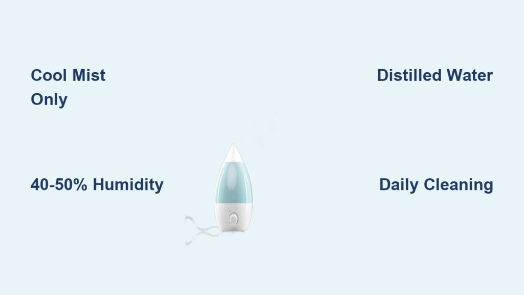 Critical mistake to avoid: Using tap water with high mineral content. Hard water creates white dust that coats your lungs, worsening irritation. Always use distilled water to ensure pure moisture.