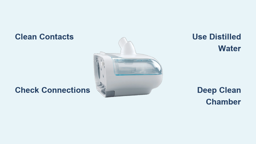 Corroded or dirty electrical contacts frequently cause heating failures. Power down and unplug your CPAP machine completely before addressing this issue. Dip a cotton swab in isopropyl alcohol and carefully clean both sets of metal contact points—the ones on the bottom of the water chamber and those on the humidifier base.