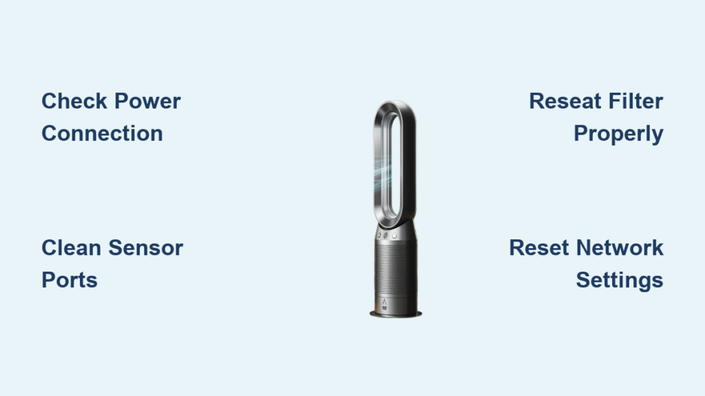 Pro tip: After resetting, open the Dyson Link app and select “Add Device” even though your purifier is already registered—this forces a fresh network handshake. The Wi-Fi symbol should stabilize within 2 minutes, restoring app control and display functionality. If flashing continues, temporarily disable router security features like MAC filtering during setup.