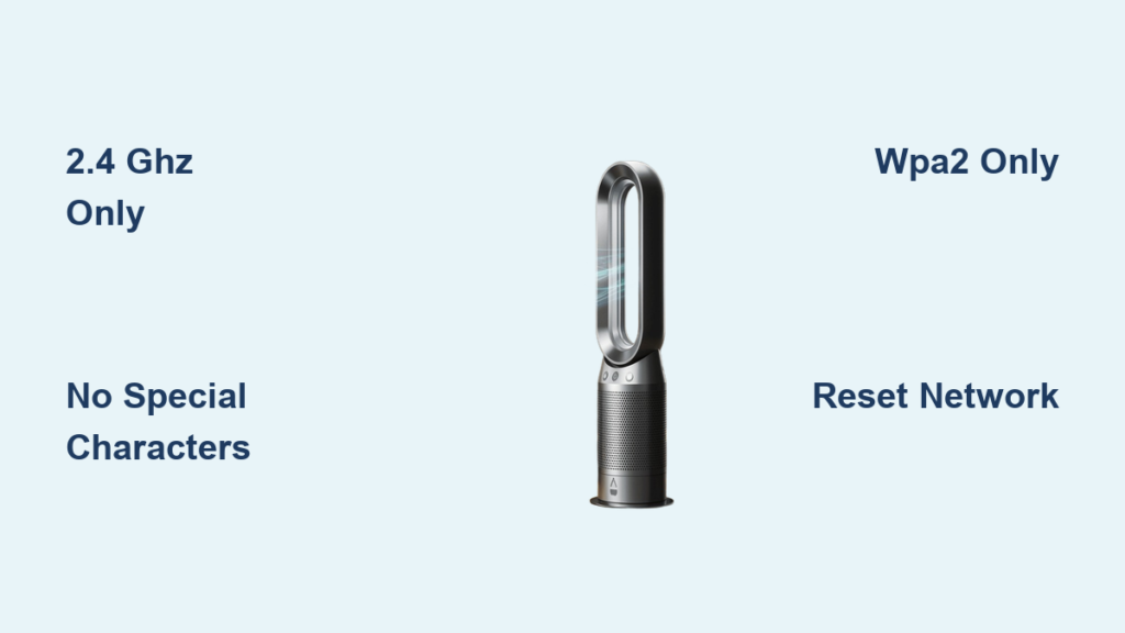 When your Dyson air purifier rejects a WiFi password that works perfectly for every other device, special characters are likely to blame. Certain Dyson models cannot properly interpret symbols like !@#$%^&*()_+-=[]{}|;’:”,./<>? during the authentication process. This creates a frustrating situation where you know your password is correct, but your purifier refuses to accept it.