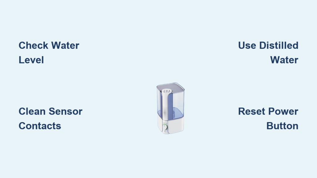 Test with a different outlet first. If lights remain dead, your humidifier’s internal fuse blew due to power surges. Locate the reset button (usually a tiny pinhole near the power cord entry on EQ-2121 models) and press it with a paperclip for 5 seconds while unplugged. If still unresponsive, the fuse needs replacement—a 10-minute job requiring only a screwdriver.
