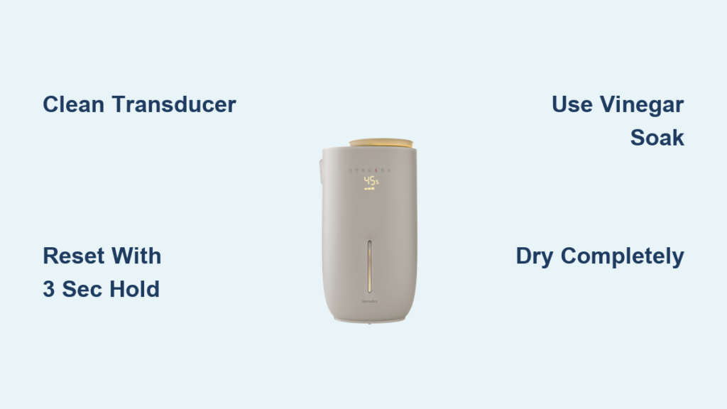 That flashing red “CLEAN” light on your Homedics humidifier isn’t a malfunction—it’s your unit’s urgent request for maintenance. When this indicator appears, your humidifier stops producing mist because mineral deposits are compromising performance. This automatic alert activates precisely after 120 hours of operation (about 5 days of continuous use), regardless of visible buildup. Many users mistakenly think their humidifier is broken, but 95% of “not working” cases stem from ignored cleaning cycles. In this guide, you’ll discover exactly why the red light appears, how to properly clean the critical transducer component, and the precise reset technique that restores mist production within minutes.