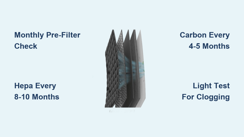 True HEPA filters capture 99.97% of particles as small as 0.3 microns—dust mites, pollen, and mold spores. While manufacturers often cite “up to 12 months,” real-world testing shows most households achieve optimal performance by replacing HEPA filters every 8-10 months when running units continuously. Homes with allergy sufferers should lean toward the 8-month mark for maximum protection. If your unit indicates “HEPA-type” rather than true HEPA, replace it every 6-8 months as these less efficient filters clog faster. Never wait beyond 12 months—saturated HEPA filters can actually release trapped particles back into your air.