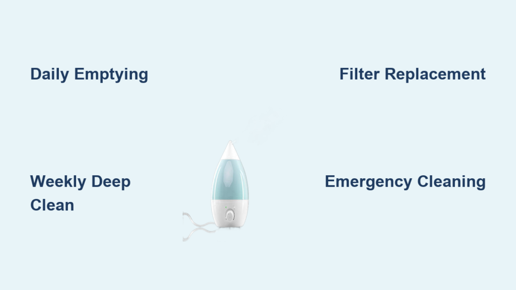 When you skip daily emptying, mineral deposits harden overnight into rough surfaces where bacteria anchor themselves. This transforms your next weekly cleaning from a simple scrub into a battle against embedded colonies requiring extended vinegar soaks. Hard water users who skip daily emptying often face clogged mist nozzles within 72 hours—forcing emergency cleaning that disrupts your schedule.
