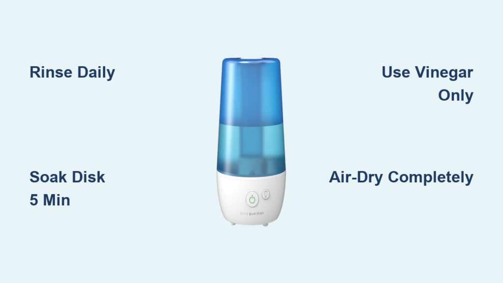 Most owners unknowingly damage their units with harsh scrubbing or run vinegar through the system—voiding warranties instantly. This guide reveals Guardian’s exact protocol from their technical manuals, including why diluted white vinegar outperforms commercial cleaners and the critical 5-minute soak limit that protects your disk. You’ll master daily tank rinsing, weekly base sanitation, and troubleshooting for white dust or weak mist—all while extending your humidifier’s life by 3+ years.