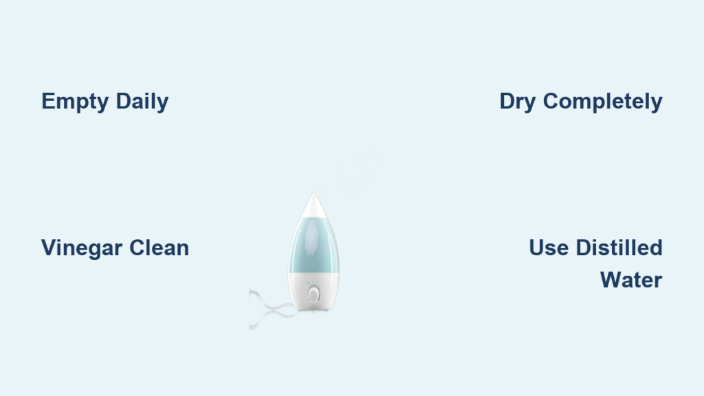 Never let water sit stagnant in your humidifier overnight. This single habit prevents mold growth before it starts and takes just two minutes of your morning routine. The American Academy of Allergy Asthma & Immunology emphasizes that daily maintenance is the most effective strategy for keeping mold at bay, especially for allergy sufferers who rely on humidifiers for symptom relief.