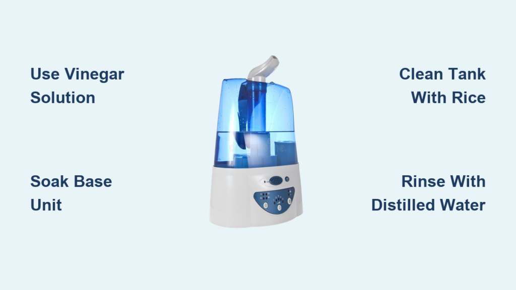 Skip commercial humidifier cleaners—they often contain citric acid that leaves sticky residues requiring extra rinsing.