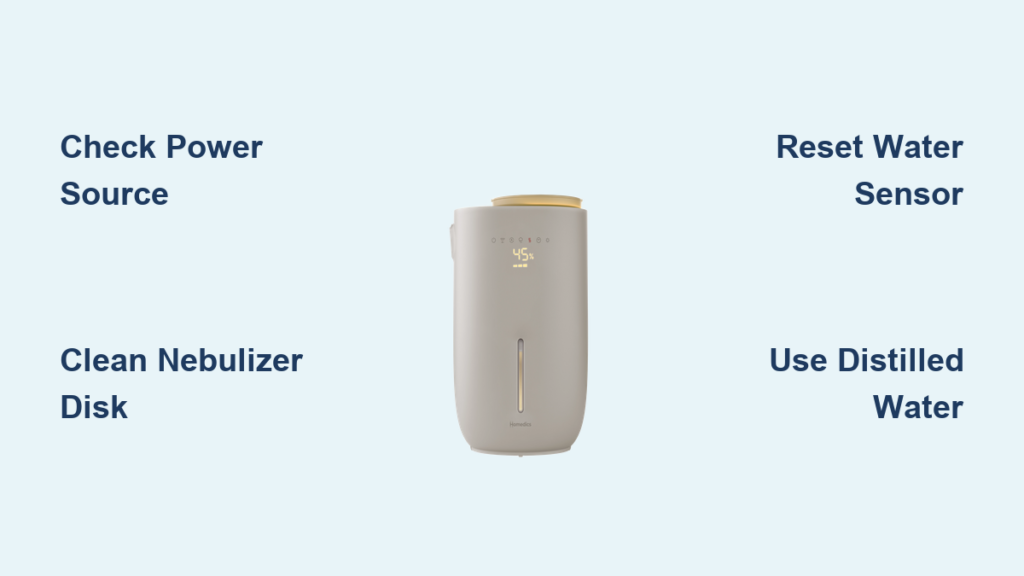 When your humidifier runs but produces zero mist, the problem typically lies in water delivery or ultrasonic generation. These targeted solutions address the most common causes without guesswork.