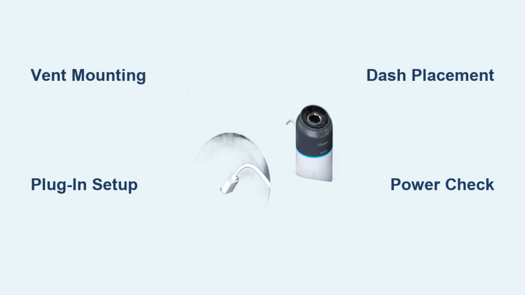 - Specific installation steps for different purifier types (vent-mounted, dash-mounted, plug-in)