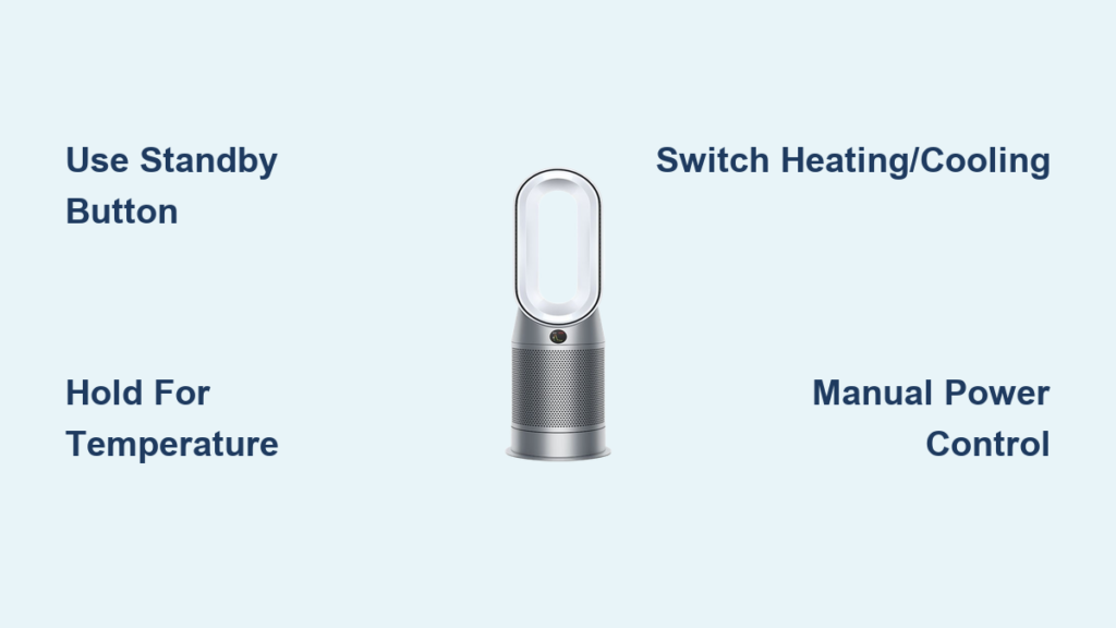 The 0°C threshold is your secret weapon for mode switching when operating your Dyson purifier without remote. As you hold the standby button and watch temperatures decrease, release it exactly when the display shows 0°C. This triggers an instant transition from heating to cooling mode—critical for summer use when you want purified airflow without warmth. Warning: Don’t confuse this with actual room temperature; 0°C here is purely a mode-selection signal. If your display shows “COOL” or a snowflake icon, you’ve successfully activated fan-only purification. To revert to heating, hold the button again and release above 0°C.