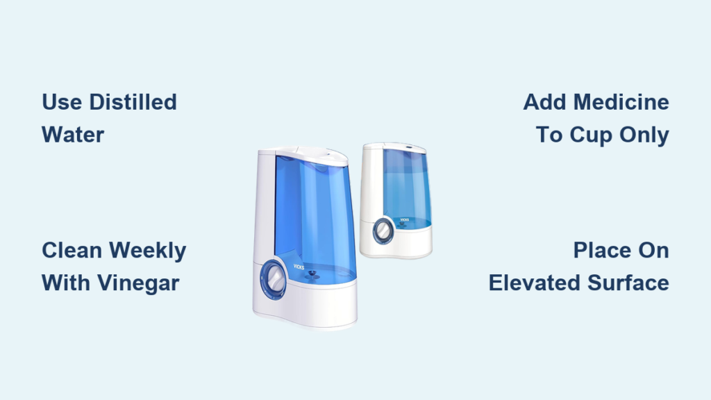 Final Note: Your Vicks warm mist humidifier delivers instant cough relief when used correctly—but mineral buildup and improper medication use cause 80% of failures. Always fill with distilled water, clean weekly with vinegar, and never add essential oils directly. For persistent congestion, run the unit on Setting 2 in your bedroom with doors closed and a ceiling fan on low. Remember: safety starts with proper placement away from children and water sources, while peak performance requires consistent maintenance. Within days of following these steps, you’ll wake up breathing easier with noticeably less throat irritation.