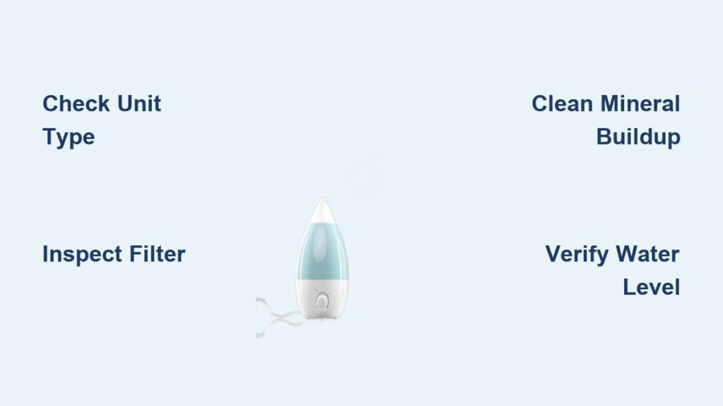 Ultrasonic humidifiers should produce visible mist. If yours doesn’t, check these specific issues immediately: