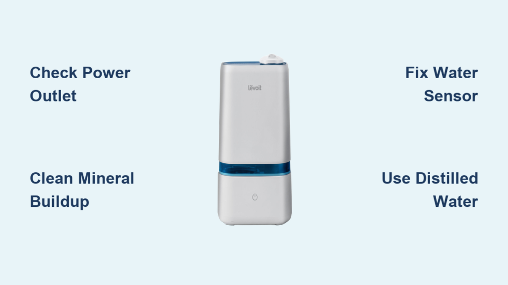 Hard water minerals silently choke critical components—the #1 reason your Levoit humidifier not working produces weak or no mist despite full water levels.