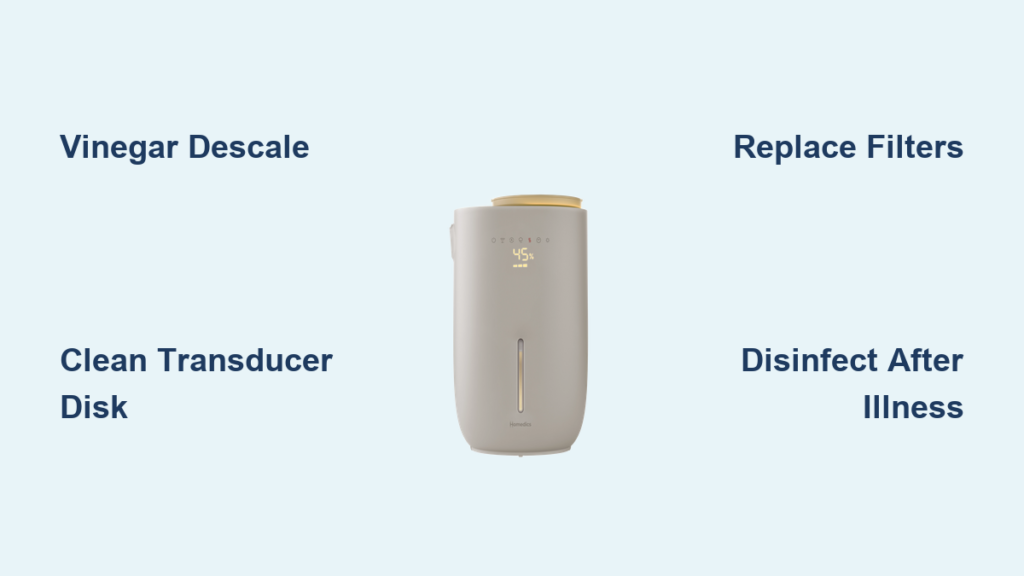 That chalky white residue creeping across your Homedics humidifier tank isn’t just ugly—it’s a breeding ground for mold that pumps