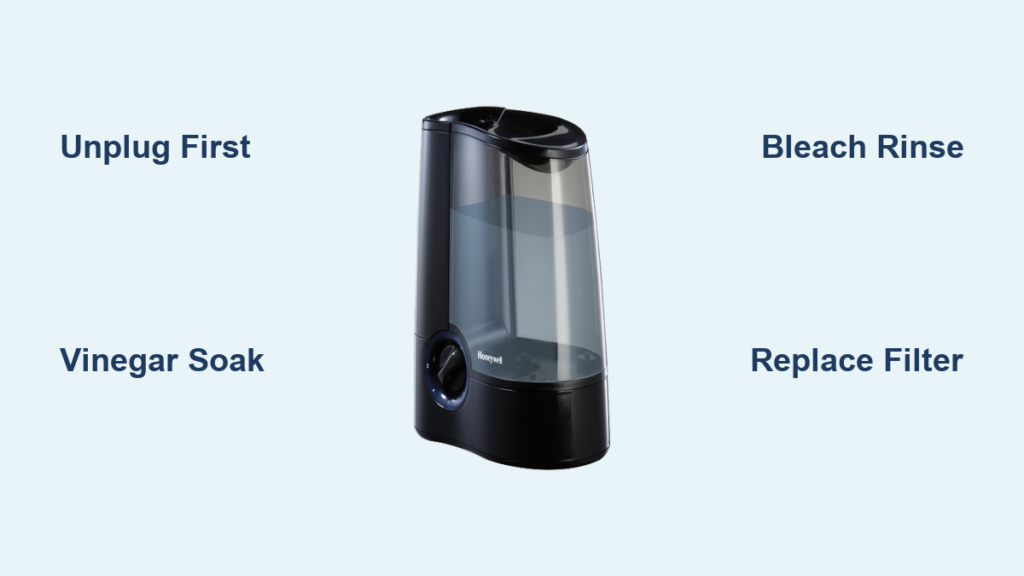 That chalky white crust coating your Honeywell humidifier’s tank isn’t just gross—it’s silently sabotaging your machine’s performance while pumping bacteria