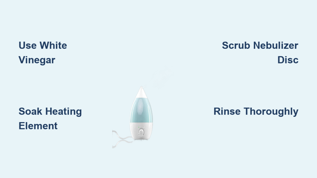 That chalky white crust coating your humidifier’s heating element isn’t just unsightly—it’s silently killing your device’s efficiency. Every night you